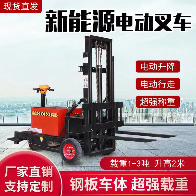 石河子市小型电动叉车1吨站驾式2吨液压升高铲车全自动仓储堆高车